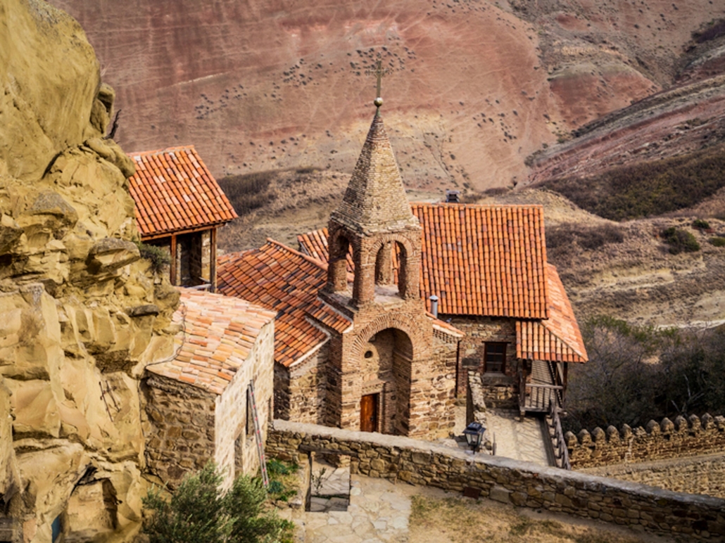 Afgelegen klooster in Georgië, 60-70 km ten zuidoosten van de hoofdstad Tbilisi, op de grens met Azerbeidzjan. Vanaf de hoger gelegen bergkam heb je een fantastisch uitzicht op Azerbeidzjan, inclusief vriendelijke grenswachten.